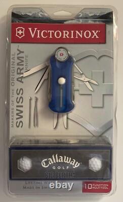 Brand New Vintage Victorinox Swiss Army Knife Blue Golf Tool Still Sealed. Includes One Sleeve of Callaway Big Bertha Golf Balls and Tool Case.
