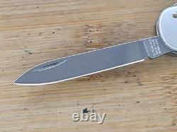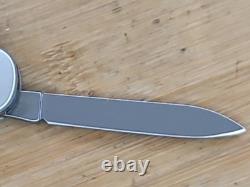 The Victorinox 74mm Cigar Cutter SAK is a rare and sought-after collectible folding knife. Made of high-quality stainless steel with a silver color, this ambidextrous multi-tool features a manual opening mechanism and a drop point blade type. It come with original box, making it a valuable addition to any knife collection. Manufactured in Switzerland, this original piece from Victorinox is a classic and stylish choice for cigar enthusiasts and knife collectors alike.